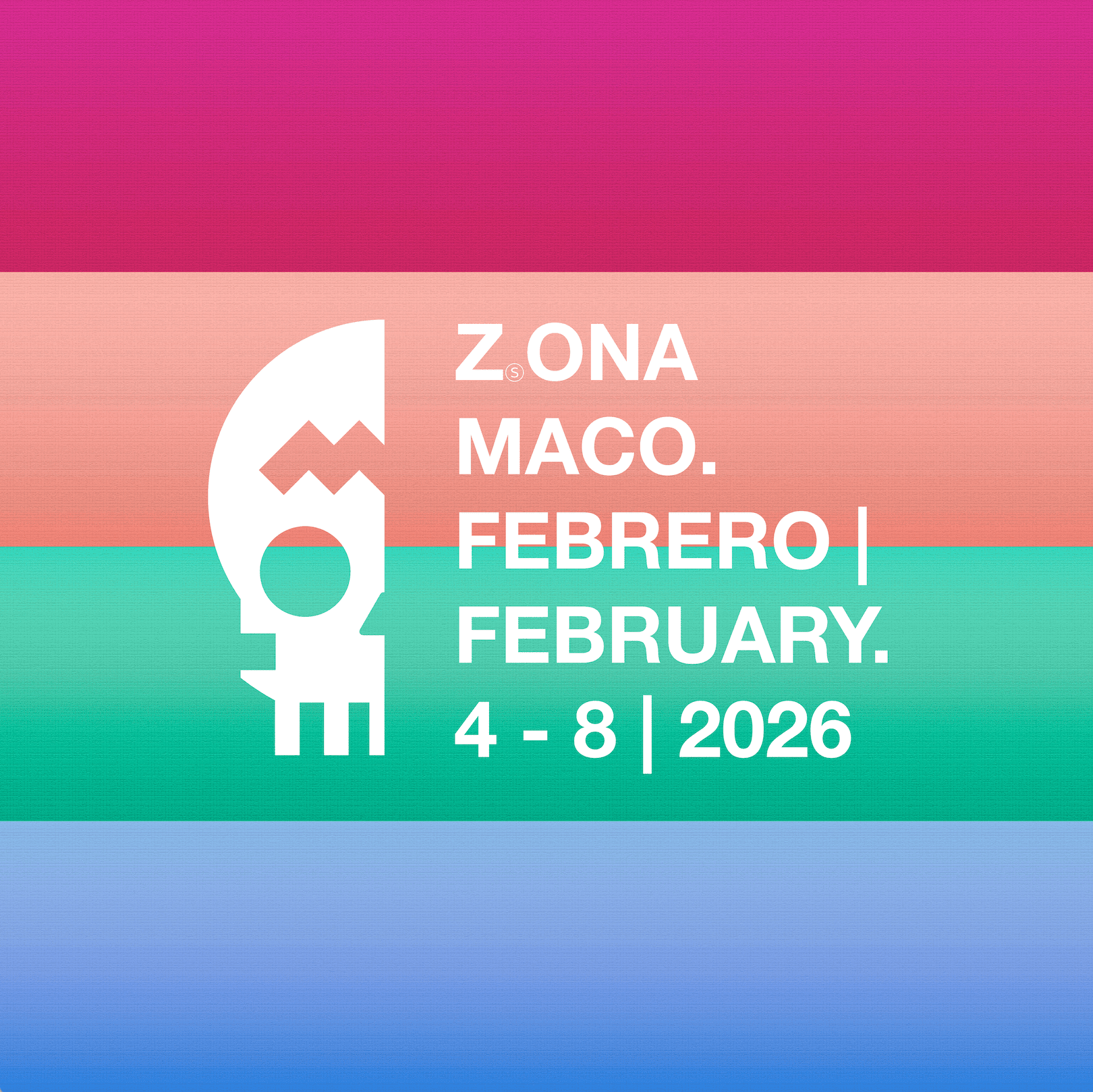 04feb1:00 am8:00 pmZⓈONAMACOZⓈONAMACO, la feria de arte más importante de Latinoamérica, en su vigésima segunda edición, reunirá nuevamente en un solo recinto sus cuatro ferias especializadas: ZⓈONAMACO MÉXICO ARTE CONTEMPORÁNEO, ZⓈONAMACO DISEÑO, ZⓈONAMACO SALÓN DEL ANTICUARIO y ZⓈONAMACO FOTO, exhibiendo galerías nacionales e internacionales de más de 25 países que presentan una selección de arte contemporáneo y moderno, diseño, antigüedades y fotografía.
